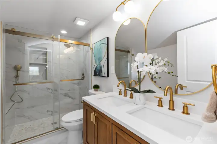 PRICE IMPROVEMENT! Modern Beacon Hill Lifestyle Awaits! This 4 bed, 3.5 bath stunner on a sunny corner was taken to the studs and thoughtfully redesigned. Indulge in luxury finishes, a chef’s kitchen with waterfall quartz, designer tile, and island that flows to a bright living area with sleek fireplace. Step out to a private deck or take in city views from the east-facing balcony. The primary suite boasts a spa-style bath and walk-in closet. Lower-level suite with private entrance adds bed, bath, and flex room—perfect for guests, office, or rental. New heat pump, systems, and finishes. Walk to light rail, parks, cafés, and local eateries in a vibrant spot with off-street parking. Seller will pay for fence.