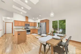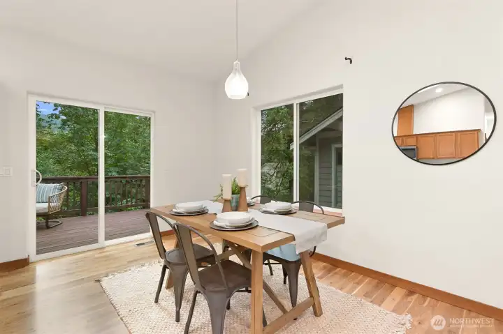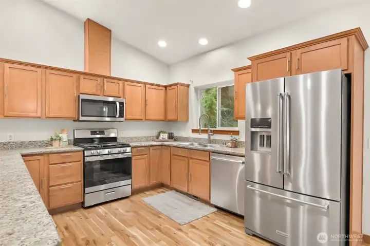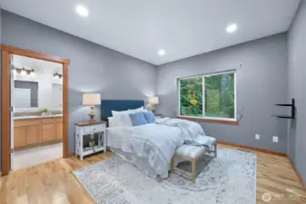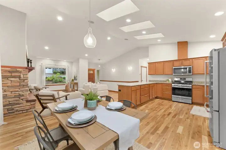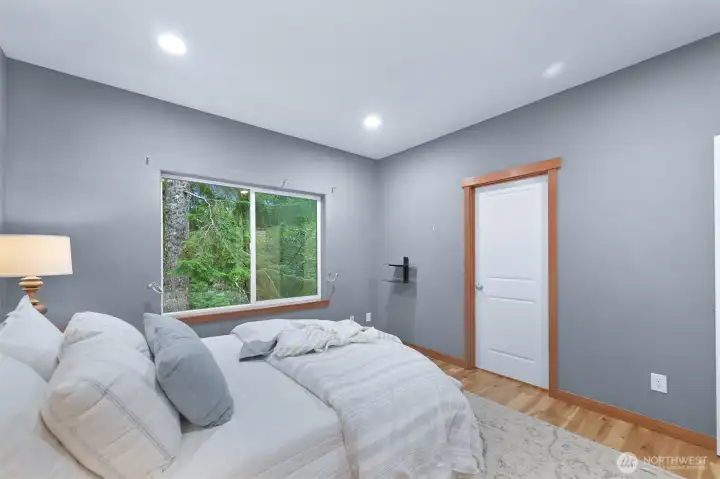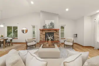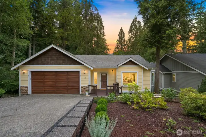 Craftsman-style home backing to a peaceful creek and lush greenbelt! Vaulted ceilings with skylights let in an abundance of light, highlighting the open-concept design, centered around a stone-accented fireplace. Spacious kitchen features granite counters, tons of cabinetry, and recently updated SS appliances. Primary suite is located on the main level. Downstairs offers a great room, two additional bedrooms, and high ceilings throughout. Hardwood floors run throughout the main level that have recently been refinished. Enjoy nature from two decks—one off the dining area and a larger one on the lower level great for entertaining. Short distance to Lookout Mountain trails & close proximity to all that Sudden Valley has to offer!