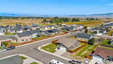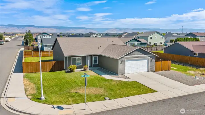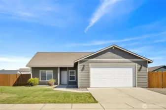 Move-in ready 2,000 sq ft rambler on a corner lot! Vaulted ceilings and a flexible den/office welcome you at the front of the home. The open-concept great room flows into a kitchen with eating bar and pantry. Spacious primary suite features a walk-in closet, dual-sink en suite, and large linen closet. Two oversized guest bedrooms and a full bath provide ample space. All appliances included! Oversized 2-car garage with taller door offers storage plus parking. Fully fenced backyard with extra parking and double gate—perfect for added access or storage.