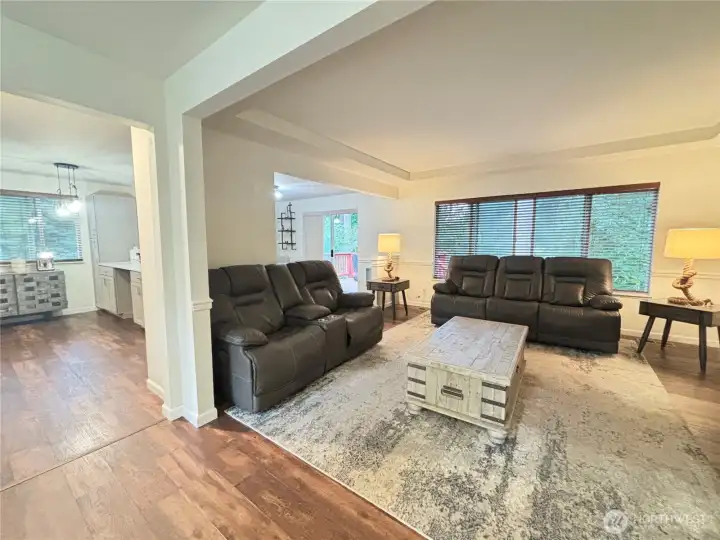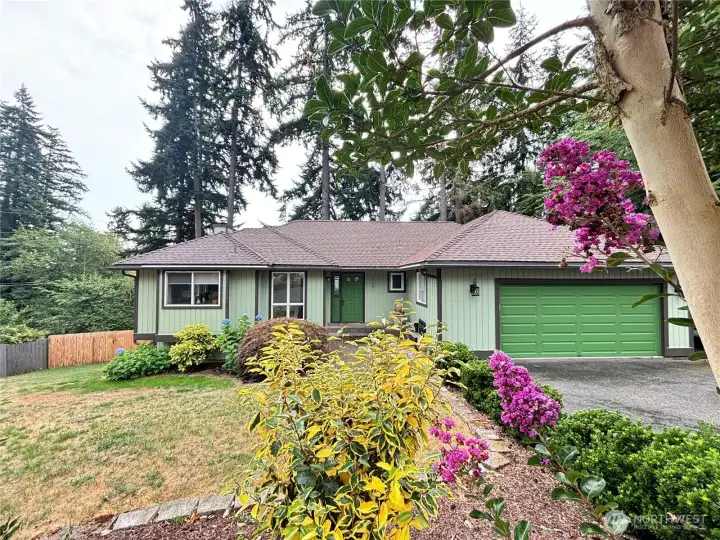 Near Everything, Yet Quietly Tucked Away. Come home to comfort in this inviting Poulsbo home, perfectly located near Silverdale, Bangor, ferries, and highway access. The main-level primary suite offers easy living, while downstairs provides added flexibility with two bedrooms, a full bath, and a second living space. New vinyl plank flooring brings warmth and cohesion throughout. A fully fenced, tree-lined yard with a fire pit invites relaxation or entertaining - plus convenient pet access from both levels. Enjoy distinct spaces for dining, cooking, and lounging, while still feeling connected. Tucked on a quiet cul-de-sac, this is where life slows down just enough.