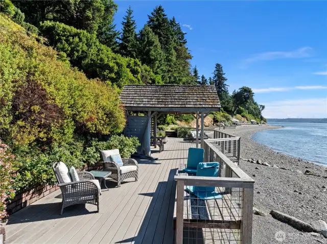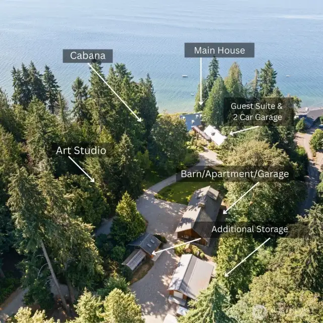 A once-in-a-lifetime opportunity to own a Gig Harbor estate of exceptional quality, elegance, & timeless Northwest style. Nestled in 7.3 serene acres, this custom 6,400+ sq ft waterfront property offers breathtaking views of Henderson Bay & Mount Rainier from 309 ft of private waterfront. Featuring show-stopping details - Hemlock ceilings & paneling, Madrona hardwood & concrete floors with radiant heat, cedar siding, solar power, and so much more. A separate guest suite and apartment provide a retreat for visitors or an opportunity for multigenerational living. 30’ x 72’ “barn” with office, ¾ bath, garage bays, woodworking/shop space, and additional storage. Gated entry, art studio, outbuildings - a true legacy property.