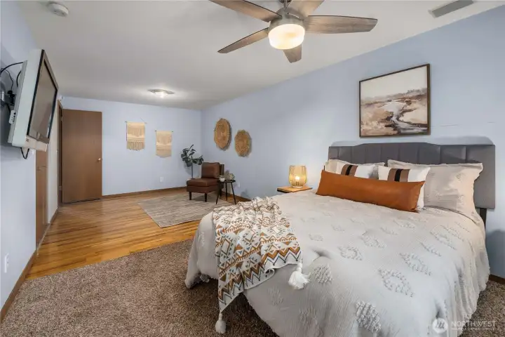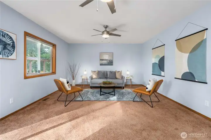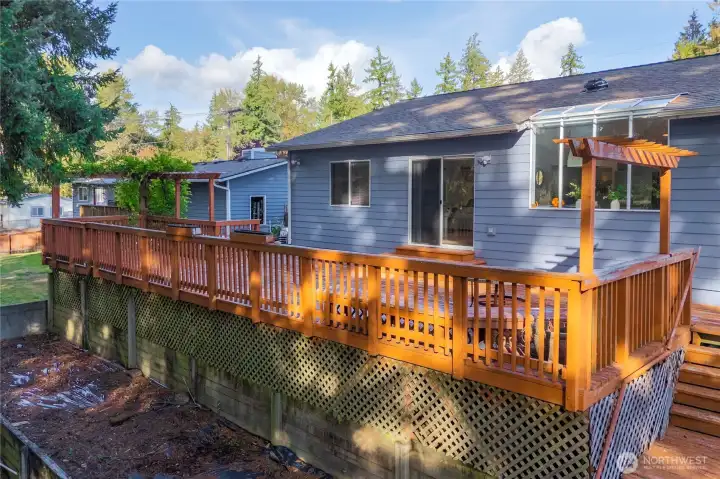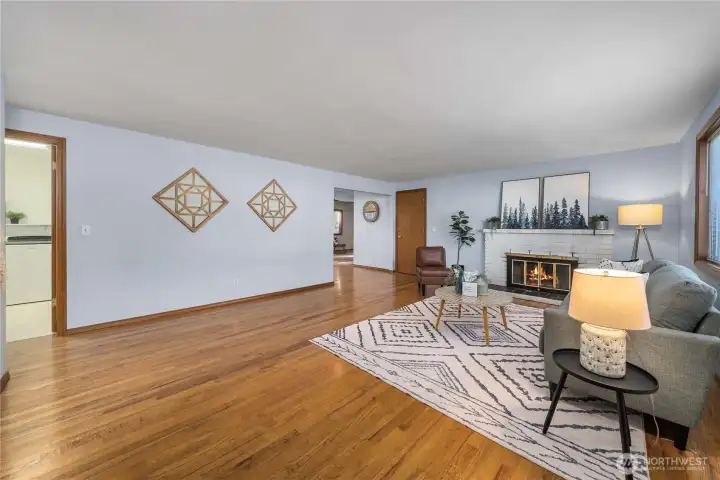 Welcome home to this sprawling one-level home situated on a dead-end street. Offering 3 bedrooms, 2 baths, and 1,870 sqft. of comfortable living. Open floor plan flows seamlessly from the spacious living room—featuring hardwood floors and a cozy wood-burning fireplace—to the chef’s kitchen with a breakfast bar, abundant cabinetry, and generous counter space. The primary suite boasts a full bath with a walk-in shower. A sliding glass door opens to a private deck and a large backyard—perfect for gatherings, play, or simply relaxing. Additional highlights include one-car garage, RV parking, cement plank siding, and great location to local shopping and dining. Located in the desirable Kent School District.