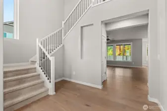 Live, work & relax in the Kingston a versatile 2-story home in Trosper Woods, a new Rob Rice community in Tumwater. This spacious plan offers 4 bdrms, bonus & a main-floor flex room with nearby ¾ bath perfect for guests or home office. Chef’s kitchen features quartz counters, upgraded KitchenAid appliances, walk-in & butler’s pantry w/wet bar, and White Maple Canyon Creek cabinetry. The upstairs primary suite is a true retreat with French doors, full tile shower, vessel tub, dual sinks & large walk-in closet. Energy-efficient upgrades include cold climate heat pump, solar, recirculating water & triple-pane windows. 3-car garage, covered patio, fully landscaped with sprinklers and privacy fencing add the finishing touches!