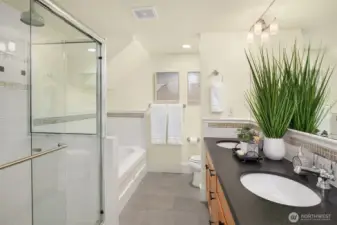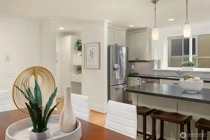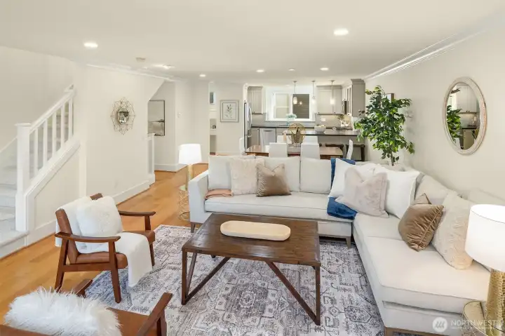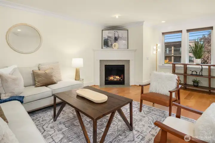 You found it! Timeless design & built with notable quality all in the heart of vibrant Capitol Hill. Imagine all the conveniences right at your doorstep. Enjoy a light-filled 3 bedroom + loft home. The kitchen is sure to please any chef w/newer stainless-steel appliances & a seamless flow into the dining area & great room w/West facing windows & a corner fp for the cooler days. Upstairs, you’ll find spacious bedrooms and laundry area. A primary suite & bath w/a French door to a private West facing balcony for the Olympic Mountain views! Upstairs, a flex/loft holds endless possibilities & has iconic Space Needle views. With a walk score of 97 you may not need your RARE 2 car garage! Radiant floor heat & A/C ensure year-round comfort. No HOA