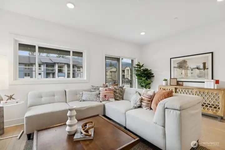 Timberstone Townhomes at the base of Mt. Si along the Snoqualmie Valley Trail. Fabulous Mountain Views! Homesite 1206- bright end unit w/ features including: a spacious first-level bedroom w/ ¾ bath, ideal for guests or home office + a 2-car garage with a driveway. The main floor offers 9’ ceilings & a spacious great room. This home includes KitchenAid appliances, LVP flooring, and ductless mini-split for cooling. Upstairs, the primary suite includes a walk-in closet and attached bath with dual sinks. Two additional bedrooms & a full bath complete the upper floor. Don't miss out on this fabulous home! Site Registration policy 4675—buyer broker must accompany and register buyer on first visit. Call to schedule your tour!