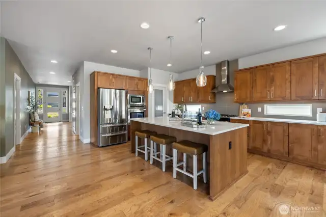 Stunning home in Blackstone - one of Manchester's finest communities with views of the Sound, City and Mountains! No detail was overlooked in this previous model home with lots of builder upgrades, and it's better than new with fresh paint, new carpet, heat pump and more. Open floor plan includes gourmet kitchen with large island and quartz counters, modern cabinetry, open to family room with custom built ins. Upstairs you'll find a spacious primary suite with spa-like bathroom, 2 more generous bedrooms and open bonus space. Who needs a vacation with this backyard oasis to call your own? Relax with a custom designed landscape including water feature, hot tub, outdoor kitchen, dining and firepit areas. Make this lovely home yours!