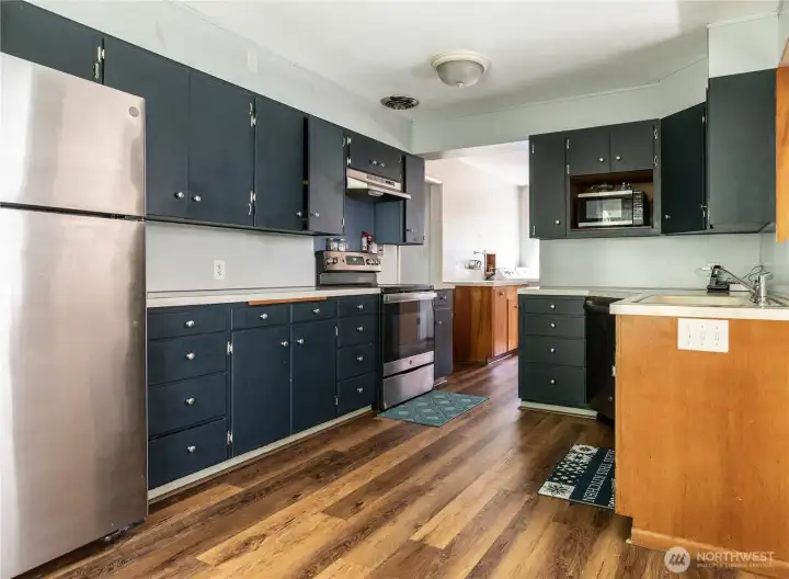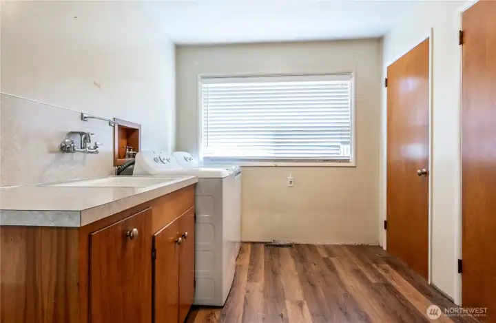 On nearly 3/4 acre in Central Park, this 3-bed, 1-bth home pairs mid-century character with thoughtful updates and is just a short walk to the grade school. The living room features a wood-burning fireplace, beautiful built-ins, while the kitchen stands out with navy cabinetry, stainless steel appliances. A separate large laundry space is located just off the kitchen with sink and cabinetry. The main level also includes the 3 comfortable bedrooms & full bath w/ double sinks. Downstairs has a one-car garage & unfinished space ideal for hobbies, storage, & workshop. Outdoors, a large deck looks out over a babbling creek and a wooded backdrop, with RV parking in the upper yard. The furnace was rebuilt in February 2025.
