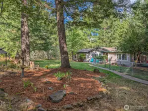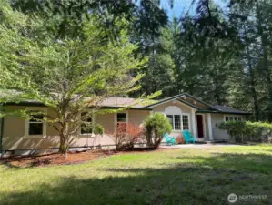 Discover your perfect 5-acre retreat in this delightful 3-bedroom, 2-bath mountain home, nestled peacefully off Hinkle Tinkle Lane at the end of the road. Surrounded by mature trees, this freshly painted, bright, and clean getaway offers a secure fenced area and beautifully landscaped grounds. Step inside to find a well-laid-out kitchen, perfect for culinary enthusiasts, alongside elegant hardwood and ceramic tile throughout. Enjoy modern comforts with high-speed fiber optic internet, ideal for both relaxation and remote work. Versatile outbuildings and plenty of room to build your dream shop! Just minutes from downtown Packwood and a short drive to Mount Rainier National Park and White Pass Ski Area. ~2.5 hrs from SEA or PDX