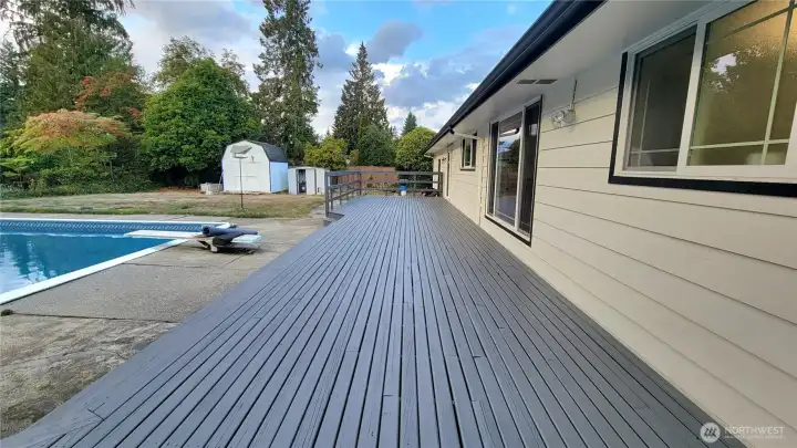 This expansive, updated Eastmont rambler boasts an impressive 18000+ CORNER lot, perfect for creating a serene oasis ideal for entertaining. The vast, fenced backyard features an impressive 1400 sq ft of decking and a gas heated in-ground pool. The grand kitchen is equipped with ample cabinetry, slab granite countertops, an under-mount sink, and stainless steel appliances. A generous size living room features a floor-to-ceiling fireplace, while the entry, dining, family, and office areas showcase elegant bamboo flooring. The primary suite offers an immense walk-in closet, a relaxing bath, and a slider that opens to a private hot tub. Additional features include air conditioning, spacious front yard and RV/Boat parking.