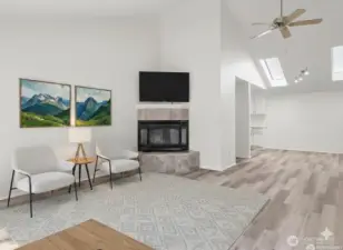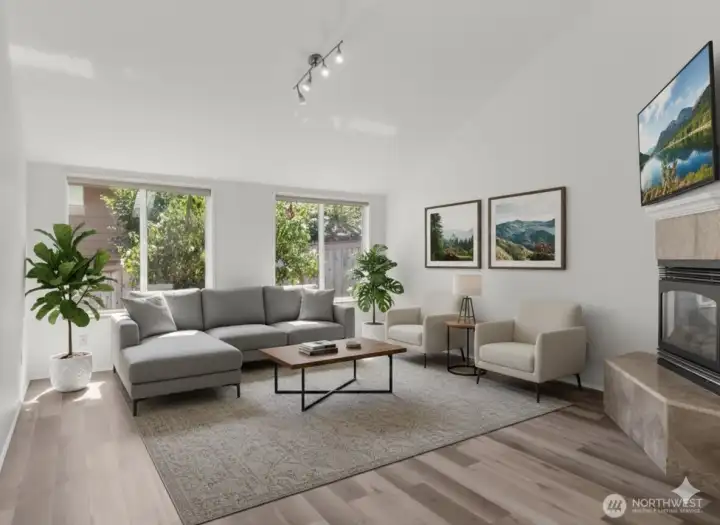 Welcome to your new home on Olympia's desirable Westside! This beautifully updated 3-bedroom, 2-bath residence offers a perfect blend of comfort and style. Step inside to an airy, open layout with vaulted ceilings, oversized windows, and skylights that fill the space with natural light. The spacious living area, complete with a cozy gas fireplace, is perfect for relaxing or entertaining.The primary suite is a true retreat, featuring a large walk-in closet and a private ensuite bath. Recent upgrades include new floors, toilets, and door hardware, plus a fresh coat of paint throughout. Outside, you'll find a serene, low-maintenance yard with a private front patio and a large deck in the fully fenced backyard—ideal for outdoor enjoyment.