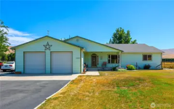 Located in Prosser, Washington, this 2.37-acre country property offers a 2,736-square-foot home built in 2007. The spacious house features a living room, family room, formal dining room, large office, and an eat-in kitchen with lots of storage. The oversized bedrooms and spacious master suite offer comfortable spaces to retreat. Solar panels help keep the electric bills low. The property also includes a versatile 3,000-square-foot shop, divided into three separate sections, perfect for a variety of uses. The land is ideal for a hobby farm, with potential for livestock or growing crops like grapes and lavender. The property is situated near the Yakima River and local hop fields, offering a peaceful, rural lifestyle.
