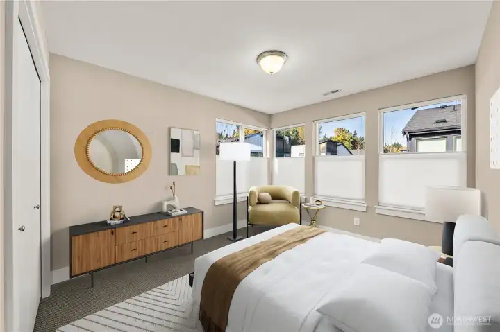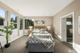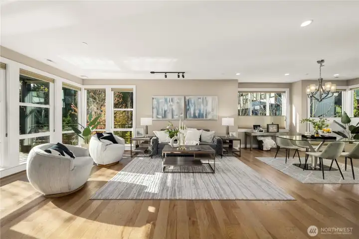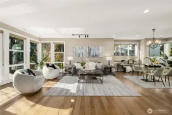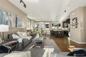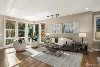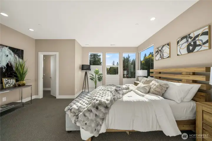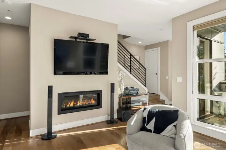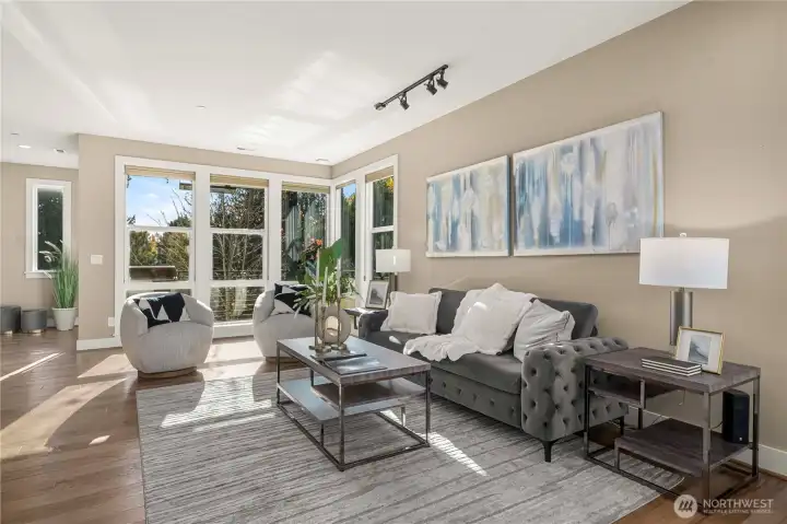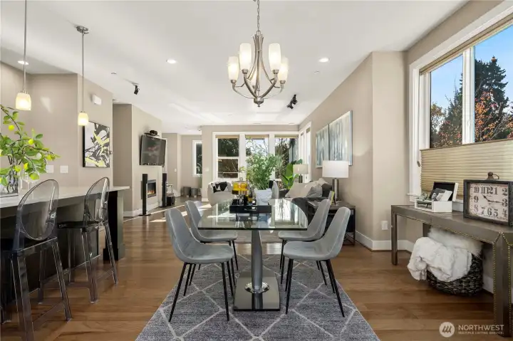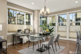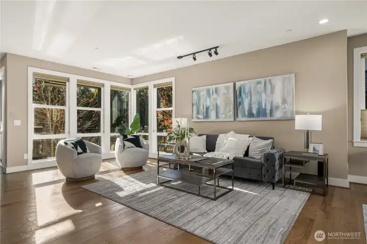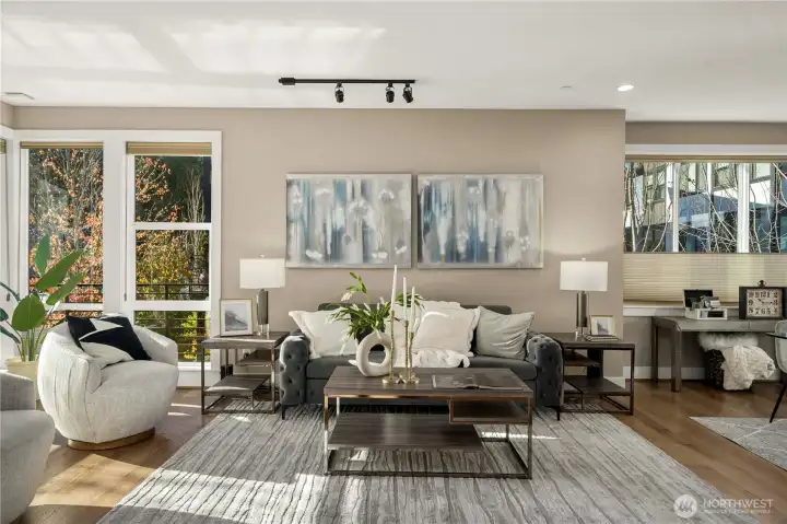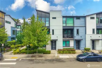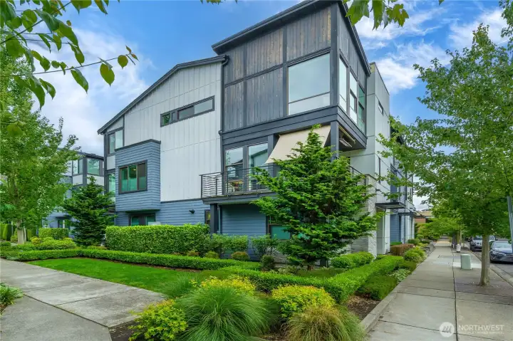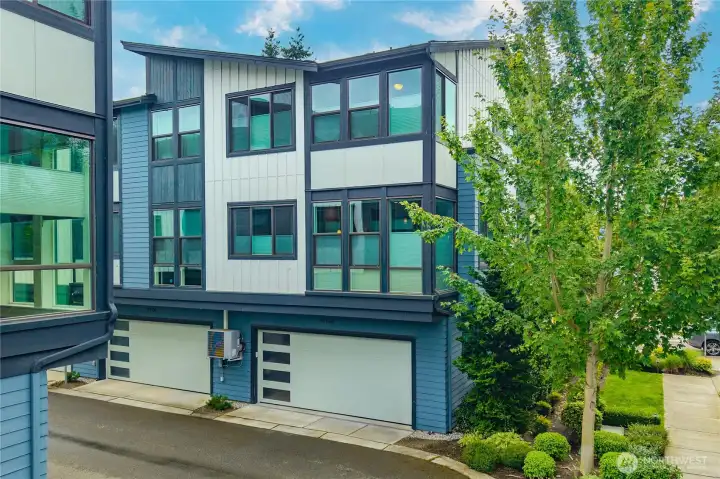 This modern downtown Bothell home features floor-to-ceiling windows, and 9-foot ceilings for natural light throughout. Main level enjoys open concept living with hardwood floors, large chef’s kitchen, dining area, living room with gas fireplace, & S. facing covered balcony. The upper-level features 3 bedrooms including south facing primary suite with spa bath and walk-in closet. Lower level enjoys the 4th bedroom/guest suite/ office/studio, with full bath. Steps to wonderful restaurants, shops, parks, boat rentals, & Gillman trail. Just moments to great North Shore schools and UW Bothell. Truly, a stunning home in perfect location! Central air conditioning and two-car garage. Easy commute to Eastside, Seattle, Everett, or anywhere. Enjoy!