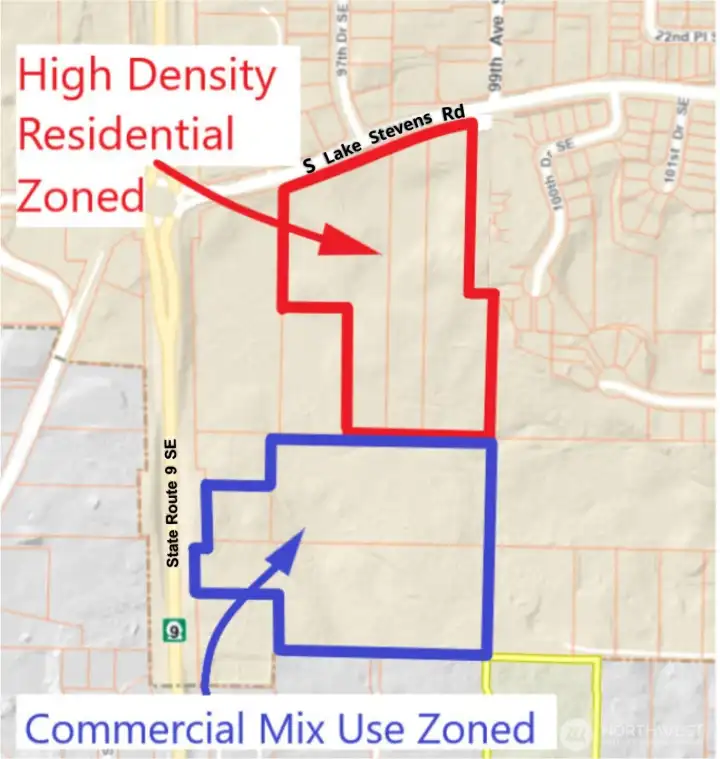 Exceptional Investment Opportunity in the thriving Community of Lake Stevens. Right off HWY 9, close to Costco and Target. This listing includes 3 homes on 10.61 acres of high-density residential land zoned R8-12. The other addresses are 9816 & 9804 S Lake Stevens Rd, with Parcel Numbers 00457100004801 & 00457100004803, respectively. Both are 2BR and 1 bath homes with 2-car garages each. See our other listing (NWMLS# 2425835) of 11.36 acres of vacant land, which is zoned commercial mixed-use. This adjoining commercial vacant land is to be sold in conjunction with this listing, making a total of 21.97 acres to work with. A developers Dream!