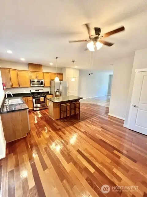 Spacious 3-level townhome with open layout, gas fireplace, balcony, and powder room. Kitchen features cherry wood floors, granite counters & ample cabinetry. Primary suite + 2 bedrooms & laundry upstairs. Bonus room/4th bedroom on entry level with patio & 2-car tandem garage. Recent updates include new vinyl plank flooring and fresh paint. Prime location just minutes to Boeing & Paine Field!