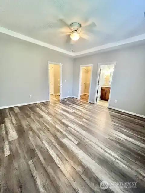 Spacious townhome with an open layout, gas fireplace, balcony, and powder room on the main living level. Kitchen features cherry wood floors, granite countertops, and ample cabinetry. Upstairs includes a primary suite with attached full bath, two additional bedrooms, and a second full bath, along with a laundry area. Entry level offers a bonus room or 4th bedroom with patio access, plus a 2-car tandem garage. Recent updates include new vinyl plank flooring and fresh interior paint. Conveniently located just minutes from Boeing and Paine Field. Recently refreshed listing with price improvement—bring offers.