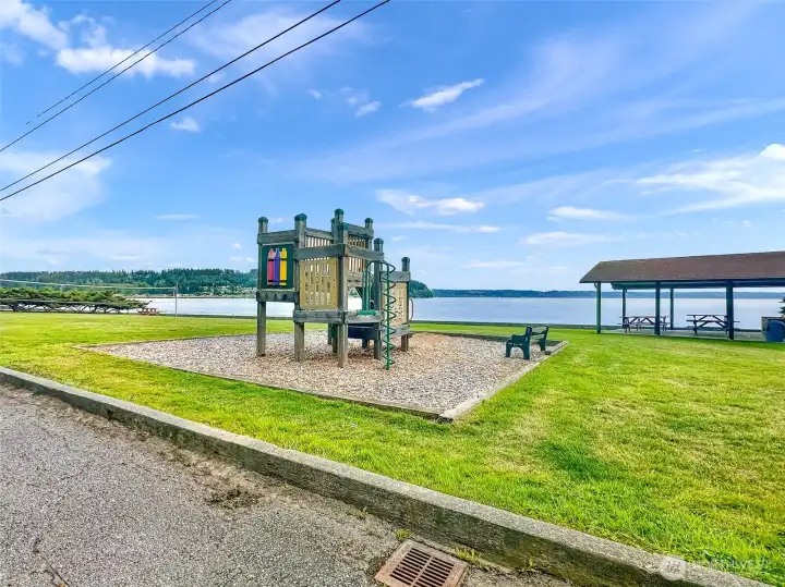 Tucked away in a peaceful island setting, this home invites you to slow down and savor the good life. Sunlight pours through skylights into vaulted spaces, dancing across warm bamboo floors. A crackling wood stove framed by a fieldstone hearth becomes the heart of cozy evenings, while a newer roof offers worry-free living. Step onto either of two decks to breathe in fresh island air, overlooking a backyard where a whimsical playscape and garden await. The adaptable layout suits restful retreats, creative workspaces, or hosting guests. With fiberoptic internet and access to a private beach, pool, and clubhouse, it’s the perfect balance of getaway and connection.
