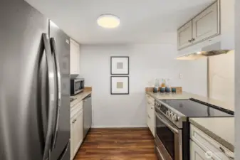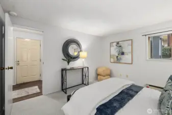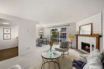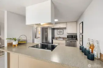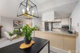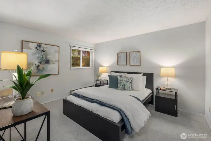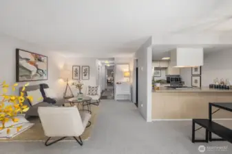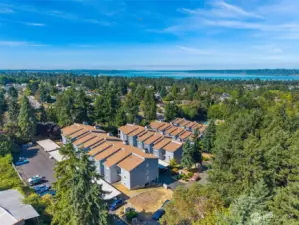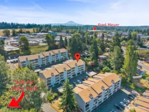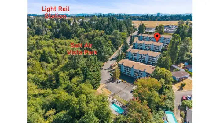 Exceptional 2- bedroom value! Spacious one-level living in Sunset Vista....conveniently located close to schools, parks, work hubs, Highline College, and transportation options. Light & bright great room style with many upgrades including fresh paint, new carpet, stainless appliances, and newer cabinets, lighting & plumbing fixtures. You'll love relaxing on your large private deck, as well as summers by the on-site community pool and clubhouse! New exterior attributes were completed by the HOA in 2020 and the special assessment has been paid. Dedicated covered parking space + additional parking tag for 2nd open space and two exterior storage closets come with this unit. Excellent investment opportunity!