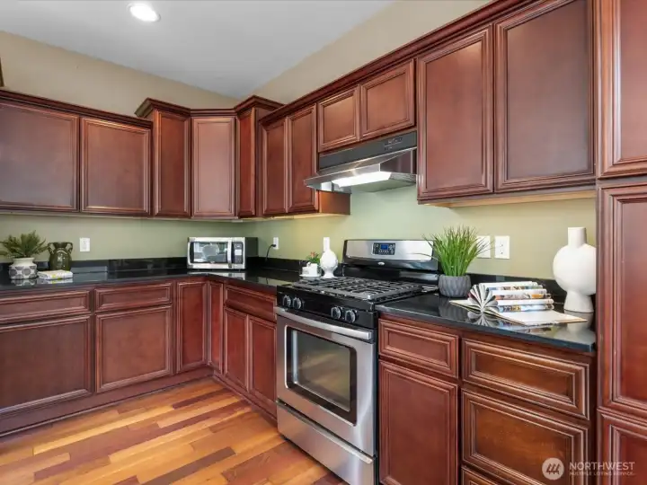 Step into a bright, inviting living room with vaulted ceilings and abundant natural light streaming through the main floor windows. The kitchen features granite countertops, stainless steel appliances, and a sliding door leading to a deck that overlooks a private, fully fenced backyard. Unwind by the firepit in a peaceful corner of the yard. Upstairs, you’ll find three spacious bedrooms, including a primary suite with an ensuite bathroom and walk-in closet. There is a second walk-in closet in one of the other bedrooms. Convenient upstairs laundry makes everyday living a breeze. Close to restaurants, groceries & highway 2.