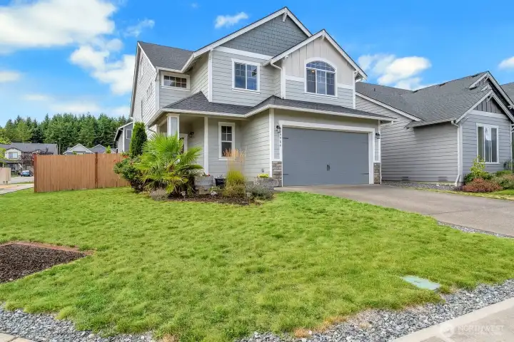 Welcome to Tahoma Terra, one of Yelm's most desirable communities. This 4-bed home features a rare floorplan that includes a main level Den/Office plus a 3rd floor finished Bonus Room w/ additional ¾ bath. 5+ bed potential! Perfectly positioned on a corner lot, this home’s covered front porch is ideal for morning coffee w/ an incredible view of Mt. Rainier. Open-concept main level w/ an island kitchen, granite counters, SS appliances, cozy fireplace, & an abundance of natural light. Other features include upstairs laundry, covered back patio, fenced backyard, & 2-car garage. Conveniently located w/ proximity to neighborhood park with play area, schools, shopping, dining, and an easy JBLM commute—this is the Yelm home that checks every box.