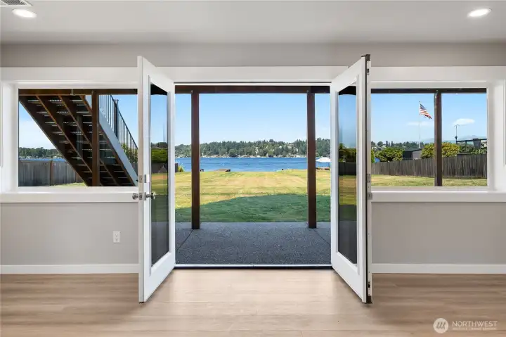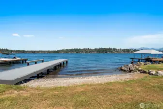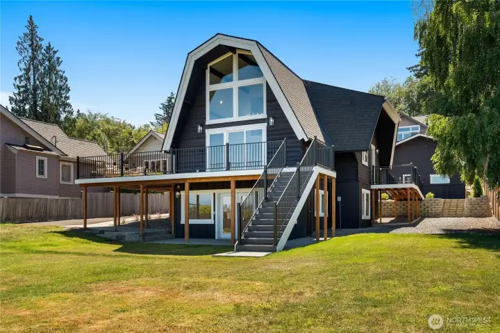 [NEW DOCK] Just under half an acre with 75 feet of pristine waterfront, a sandy beach, and sweeping views of Lake Stevens and the North Cascade Mountains. Completely remodeled from the studs out, this 4-bedroom, 3-bath home blends modern luxury with thoughtful design. Inside, has two full kitchens, spacious living areas, and plenty of storage, perfect for multi-generational living or hosting guests in style. Has AC for year-round comfort. The level lot offers irrigation, detached garage, RV parking, Tesla charging station, and a ramp for easy, no-stairs entry. Whether you’re enjoying a morning coffee by the water, hosting summer barbecues, or watching sunsets over the mountains, this property delivers the ultimate lakefront lifestyle.