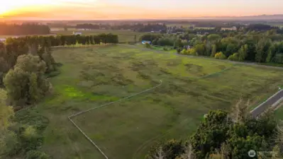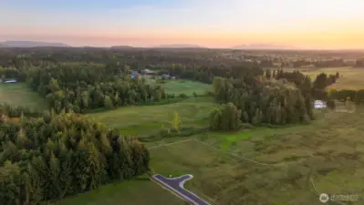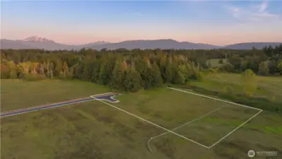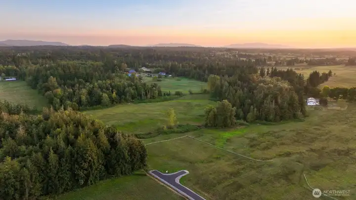 Take advantage of this rare, expedited development opportunity on a level 2.2-acre lot. Most preliminary work is complete, with an approved 6-bedroom or less septic design complete. Additionally, the property features power, road access, and a shared well installed. As the last home on a road, enjoy privacy, western sunset views, a seasonal creek, and expansive territorial vistas. Explore endless possibilities with initial conceptual plans for a 3,737 sq. ft. home with 5 bedrooms, 3 bathrooms, and a den, plus a detached 1,561 sq. ft. garage and a 924 sq. ft. studio, or cast your own vision and design your dream home. Enjoy a storybook setting while staying conveniently close, within a ten-minute drive to either Bellingham or Lynden.