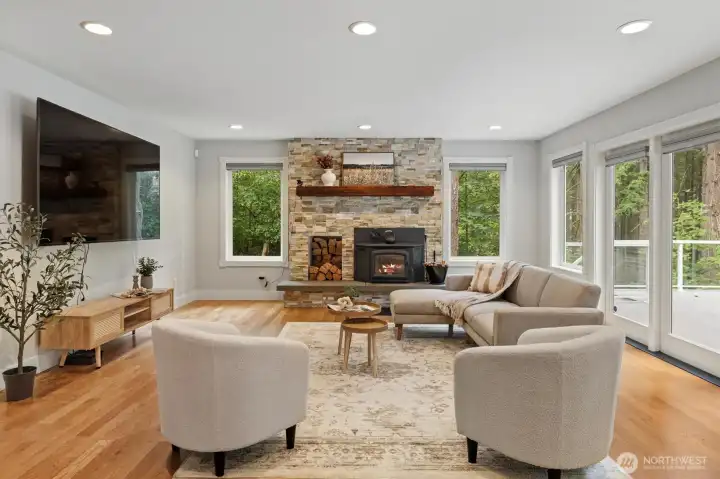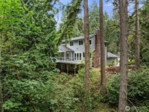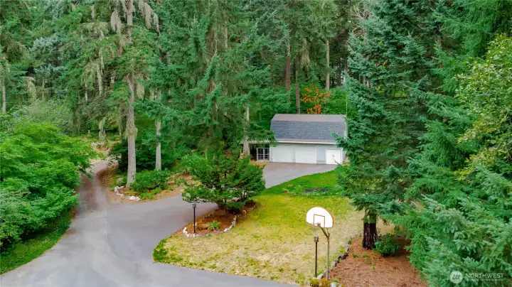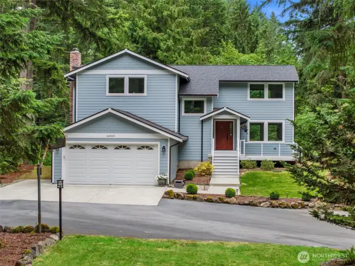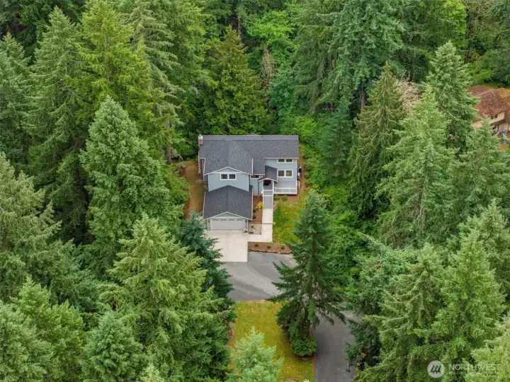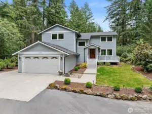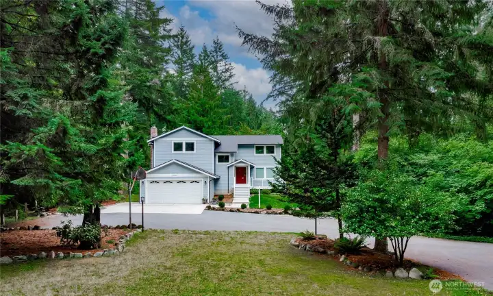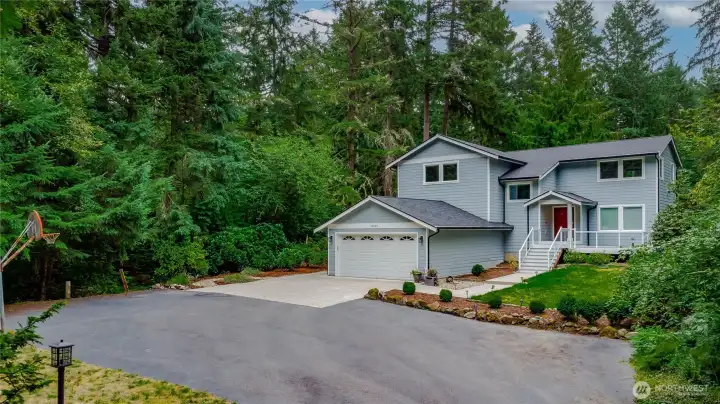 Tucked away on 2+ private acres, this 2020 custom build and land is a woodland retreat. Step inside to a chef's kitchen with walnut cabinets, Bosch appliances, and a double oven made for cozy gatherings. After a muddy adventure, the mudroom welcomes you with built-ins and its own shower. Curl up by the rustic woodburning fireplace, or retreat to a primary suite with vaulted ceilings, and a spa-like bath w heated floor. Down the hall you'll find the additional 2 bedrooms and additional flex/bonus room upstairs. Outdoors, the back deck stretches the length of the home. Detached 2-car garage w/shop and 600 sq ft above (DADU potential). Basement plumbed for a 2nd kitchen. Very close to highway, shopping, etc! Lender offering a 1% rate buydown!