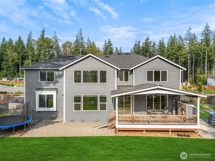 Spacious Elegance inside and out! North East facing 3,484 Sq ft Baker Floor plan featuring 5 Bed 3.25 Bath. Chef’s kitchen with Quartz countertops, large island for entertaining and walk-in pantry! Opens to a Dining area and great room with Soaring ceilings and Majestic gas fireplace. Main level offers a versatile 5th bedroom or office, 1/2 bath, and a guest suite with private ensuite. Upstairs large primary suite boasts a walk-in closet and luxurious bath, accompanied by 2 guest bedrooms office/Den and a full bath. Just Shy of 1 Acre enjoy Privacy, Gardening, fire pit. Covered outdoor living space including gas fireplace for year-round enjoyment. Partially fenced backyard, tankless water heater, central A/C, and a 3-car garage.