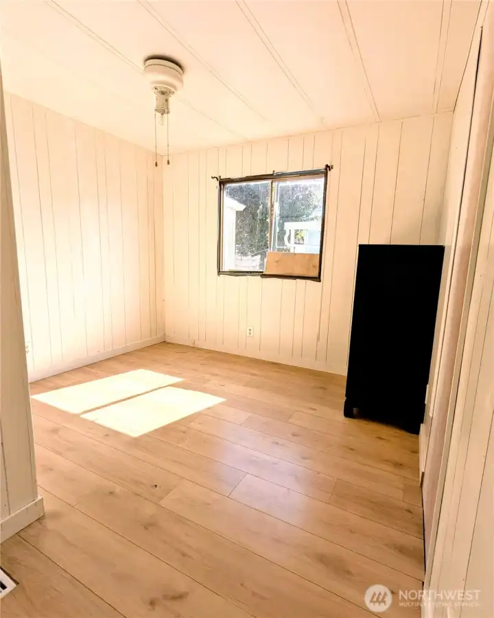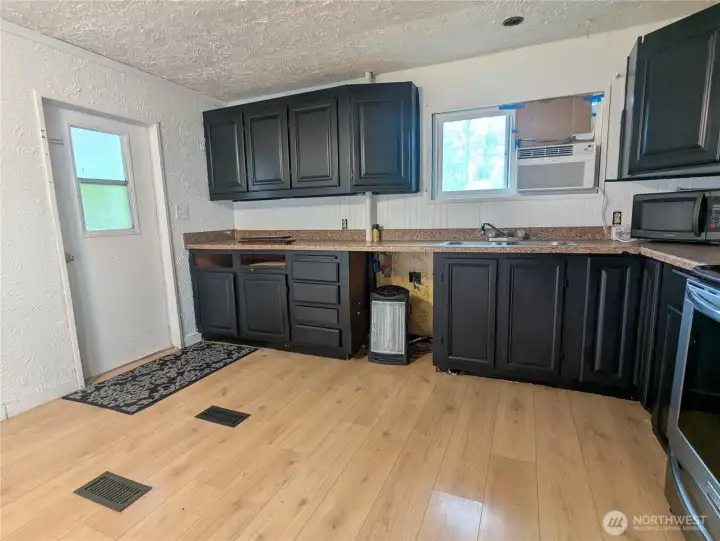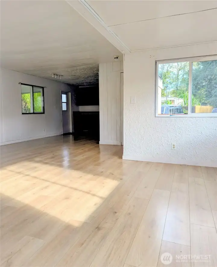 Cash sale only- 2 bedroom, 2 bathroom 1000sf manufactured home full of potential on a great sized lot. Brand new sub and vinyl floors throughout, large open living, dining and kitchen area with lots of windows for tons of natural light. Painted kitchen with most appliances, plenty of space for meal making/baking and a pantry! Primary bedroom features a large bathroom that also houses the laundry! Second bedroom with built ins and full hall bath. Outside offers extra parking on one side, covered on the other, room for a patio, big yard plus two storage sheds out back. Inside and out the home feels bigger, in need of work, bring the TLC. Lot rent $1025 plus utilities, 2 dogs/cats allowed, no age restriction, park approval required.