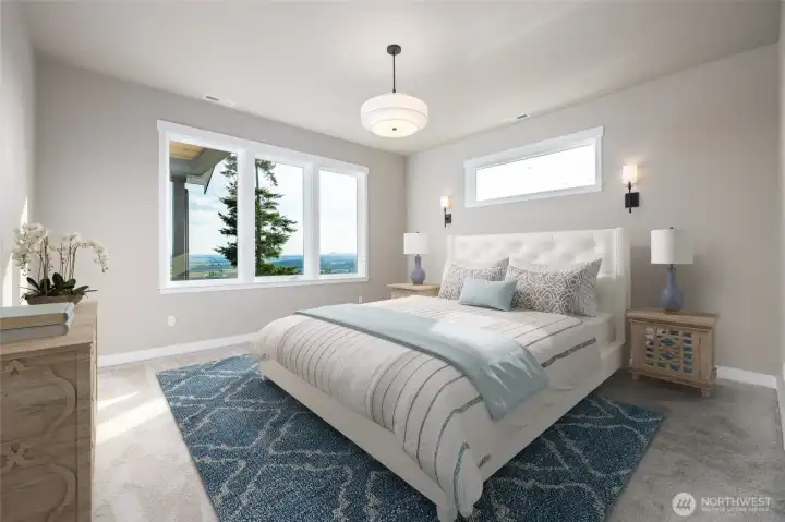 Brand new single-level home with spectacular views of the Cascades, Olympics, Skagit Valley, & San Juan Islands! Located in private gated community of Avalon Heights, this custom-designed home features 10FT ceiling heights, custom-made cabinetry throughout, magnificent vaulted great room, beautiful 14FT tall stone fireplace with stone hearth & mantel. An elegant 2742 SF home sitting on a level 1-acre with a huge covered patio facing sweeping views to the south & west. Flooring high-quality WPC Plank & carpet. Features 4 bedrooms plus large bonus room. Extra large 3-car garage. Great location only 7 minutes to I-5, 15 min to Mt Vernon, & 25 min to Bellingham. NOTE: HOA dues include water bill.