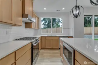 Move-in Ready! Welcome to Dell Vista, HC Homes' newest community in Puyallup! This beautifully crafted 2,905 SQ FT home offers luxury plank vinyl flooring throughout entry, kitchen, dining, & family rm, along w/ a private mini-suite that includes a ¾ bathroom w/ dual sinks. The spacious kitchen boasts custom-built cabinets, a large island, & SS appliances w/ a deluxe refrigerator/freezer combo. Upstairs, the primary suite showcases dual closets & a spa-inspired bathroom w/ free-standing tub, dual vanities, & private water closet. A large bonus room provides additional space for entertainment or relaxation. The home also includes front/backyard landscaping w/backyard fencing, heat pump & 3-car garage!