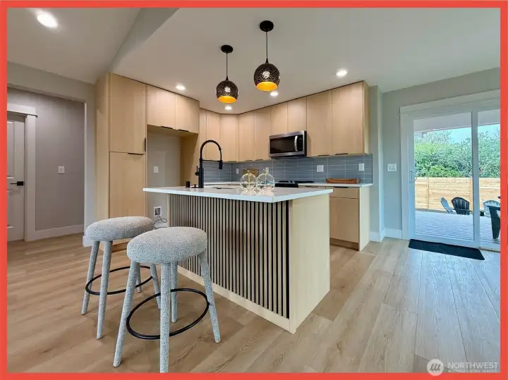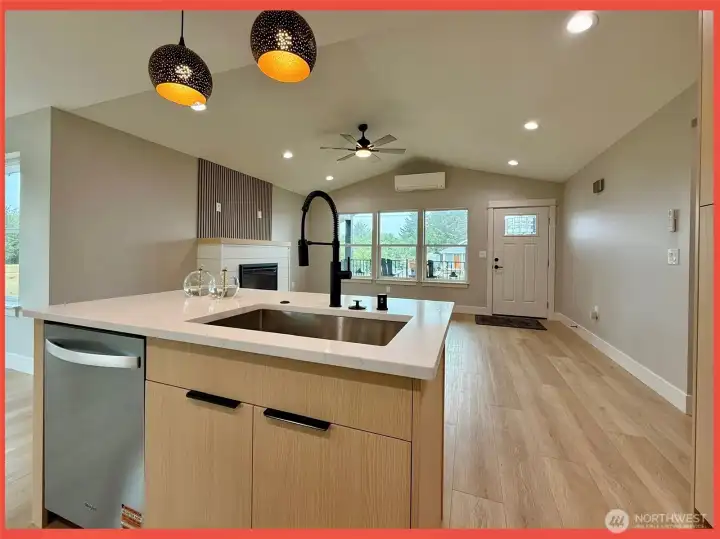Brand New Ocean Shores, WA Retreat near the Taurus Beach Approach! This residence exudes impeccable design and upscale finish materials throughout. Enter the 1,162sf open concept plan with vaulted ceilings, fireplace, and luxury vinyl plank flooring. The kitchen features gorgeous cabs, stainless appliances, Quartz slab countertops, tiled backsplash and an island/breakfast bar. Down one hallway is the airy primary en-suite with walk in closet, tiled shower and sliding door to the covered deck. Hallway bath with tub and 2nd bedroom on the opposite side of home. 1-car garage. RV parking. Front and back covered decks w/Trex decking. H&C ext spigot. Partially fenced back yard. 8,052 sf lot with city greenbelt behind property for extra privacy.