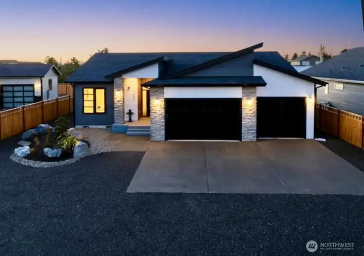 New Commercial Residence at Ocean Shores, Washington! Stellar location near beach access at Oyhut bay via Tonquin St, and near a boat launch into 23 miles of lakes and canals winding about the peninsula. CITY COMPLIANT for short-term renting with interior sprinkler system. 1497 sf 3BR 2BA plan by Z Brothers. Great room featuring vaulted ceilings, fireplace with stone surround and luxury vinyl plank flooring. Kitchen with plenty of cabs and prep space, farm sink, pantry, and large peninsula seating four. Gorgeous Quartz slab counters and wine rack. Follow one hallway to the primary ensuite with bathroom including a shower with tiled surround and walk-in closet. Another hall leads to the 2nd and 3rd bedrooms and full bathroom. 3-car garage. Wired for hot tub. Plumbed for EV plugin. Full size 9,110 sf lot. Use this home as a full-time residence, vacation getaway or short/long-term rental; with commercial zoning, the choice is yours!