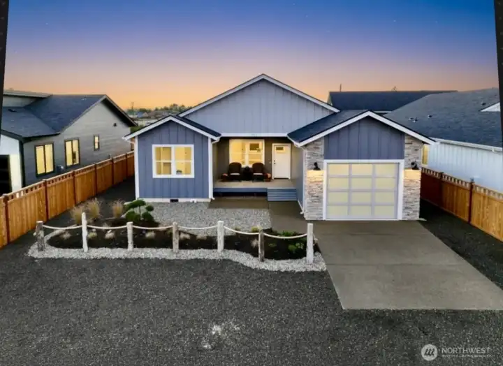 New Commercial Residence at Ocean Shores, Washington! City compliant for short-term renting with interior sprinkler system. Great location near beach access via Tonquin Ave or ship canal boat launch into 23 miles of fresh interconnecting lakes and canals winding about the peninsula. 1,365 sf residence by Z Brothers construction, featuring 2 BR 1.75 BA and a 1-car garage. Open concept great room with stack-stone fireplace flanked by built-in cabinets. 9' ceilings. Statement lighting. Spacious kitchen with 3cm Quartz slab countertops, stainless appliances, and an island with wine storage. Dining w/access to the back covered deck. Private primary ensuite with coffered ceiling, walk-in closet, door to deck, and bathroom with tiled shower. An additional sunny bedroom and full bathroom complete this plan. Mini-split AC/Heat. Plumbed for EV/RV. Wired for a hot tub. Hot/cold exterior spigot. Landscaped front. RV parking. Full size 7,299 sf lot. Use this home as a full-time residence, vacation getaway or short/long-term rental; with commercial zoning, the choice is yours!