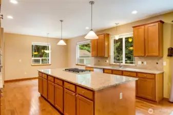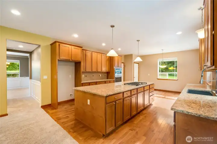 Beautifully maintained 3 bed, 2.5 bath Stanwood home with 2,748sf of interior living space! Features include: soaring ceilings upon entry, formal areas leading to casual spaces for day to day living, newer carpet (2022), hardwood floors, inviting kitchen with newer quartz counters, built-in oven/microwave, gas range, and large center island - great for entertaining! Adjoining slider door leads to private patio area with greenbelt views, fire pit, and fully fenced yard. Don't miss the upstairs bonus room, restful master suite, 3 car garage, newer high-efficiency furnace/heat pump (2021) & hot water heater (2021). Includes outbuilding, 3 propane tanks, private well/septic and RV parking. Minutes from I-5—this home has it all! Move in ready!