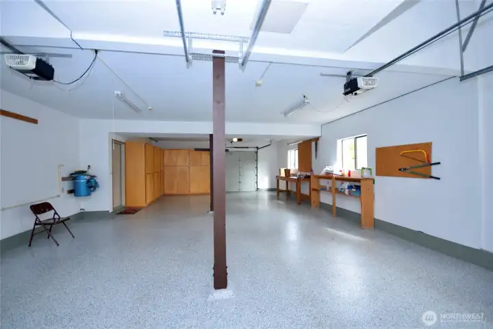 Stunning, contemporary house in Sunland, on premier lot with views of golf course, greenbelt & pond. Lots of windows for views & sun. Living room has vaulted fir ceiling with floor to ceiling fireplace. Fab kitchen updates. Two ensuite bedrooms. Primary bedroom has office space, walk-in closet, double wall closet, built-in dresser & private deck. Primary bath was completely remodeled with large walk-in shower, Thermo massage air jet tub, double sinks, heated floor & separate toilet. All rooms are oversized with lots of storage. Downstairs has rec room large enough for a pool table, built in desk & shelves, & wood stove. Large laundry room & storage closet under stairs are also downstairs. Garage has Penntek flooring & golf cart door.