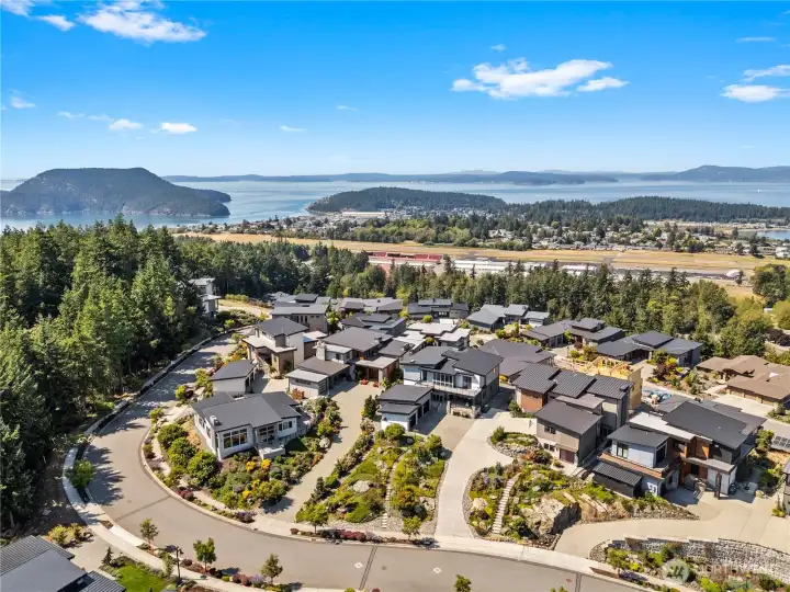 Perched in Rockridge, Anacortes’ premier neighborhood, built by luxury builder Strandberg Construction, this home is truly one of a kind with sweeping views from every side. Soaring windows flood the great room with light, where living, dining, and kitchen blend seamlessly. A two-way fireplace warms the space, while the kitchen offers a walk-in pantry, island with bar seating, and ample storage. The primary suite boasts a fireplace, spa-like bath, and private view deck. Multiple living areas, an elevator, and upstairs wet bar provide comfort at every turn. Outside, enjoy landscaped gardens, walking paths, and backyard spaces framed by ocean and mountain vistas.