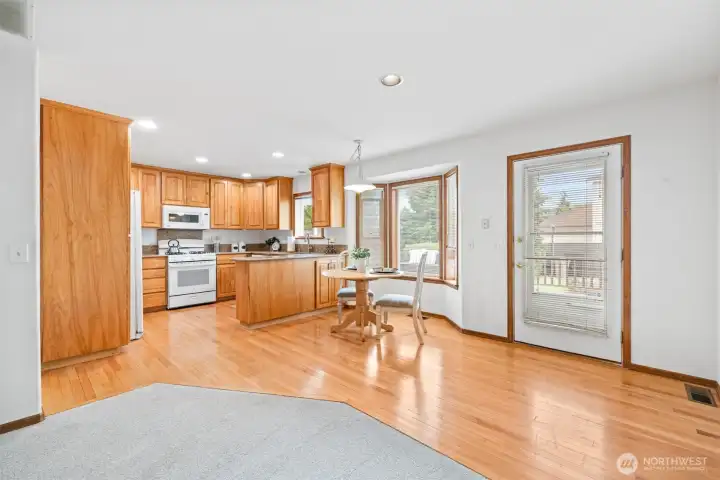 Welcome to this 3-bedroom, 2-bath, 1,666 sq ft home in the heart of Sequim, just minutes from Carrie Blake Park, shopping, and restaurants. Brand New Carpet Throughout! The kitchen features soft-close cabinets with pullouts, propane stove, and a new dishwasher. Enjoy multiple living spaces with a living room, family room, formal dining, and breakfast nook. The spacious primary suite offers a walk-in closet, soaking jetted tub, and separate shower. Updates include a new roof in 2023. The fenced backyard with shed and garden area is perfect for outdoor living. No HOA!