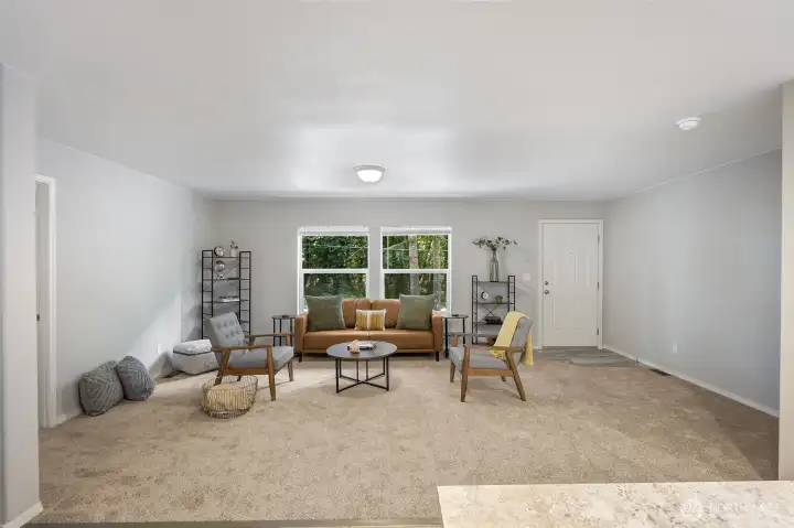Price Reduced on this Move-in Ready, adorable, 3-bedroom, 2-bath home near Black Lake. Tucked on a cul-de-sac in the Evergreen Shores neighborhood, you get a fantastic home, plus amazing community features! This beautiful 1,296 sq ft home offers an open floorplan and split bedroom layout; new carpet throughout, an open kitchen with island and tons of storage, a dining area, large living room, huge primary suite with a walk-in closet & ensuite bath, plus two additional large bedrooms & bath. Enjoy entertaining on the large .17-acre lot with a fenced backyard and plenty of parking. You'll love the great offerings of the Evergreen Shores community: a gated, private 11-acre park with clubhouse, seasonal pool, basketball court, playground, picnic area, covered cook-shed, boat launch, dock, & lake swimming access. Enjoy the secluded feel, only minutes from shops, restaurants & highways, and less than 30 minutes to JBLM. Come make this beautiful home yours today!