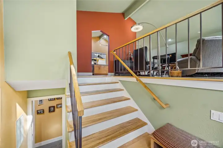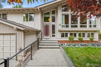 A stunning interior, designed for comfort, open concepts and easy living greets you at the front entry of this modern split level home. The bleached hickory stairs, widened entry, shaker kitchen and floor length windows bring light and function to a well-cared for home. Two full Baths, ensuite to primary, and all updated! The kitchen slider opens to a private patio. quiet and privacy come at the end of the Cul de sac. Expansive yard, two car garage, new appliances, and a new roof. Recently upgraded AC keeps you cool! Downstairs fully finished rec room features built in study desks, the second fireplace and a guest room. Laundry, kitchen-ette & walk in shower. 3 BRs up, 2.75 BA by design. Walk to NSD schools. 10,000 sf Lot