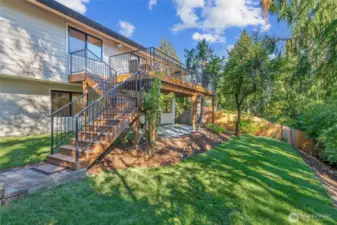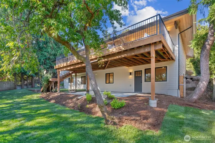 *UPDATE* Fully permitted down to the studs and now featuring a newly landscaped backyard with fresh sod! This stunning custom home blends modern design with peaceful living. The light-filled kitchen showcases custom white oak cabinetry, an oversized island, and premium Thermador stainless appliances. Enjoy indoor-outdoor living with a large back deck featuring iron railings and stairs leading to a spacious patio and yard with new sod and mature fruit trees. The luxurious primary suite offers a spa-like bath and a walk-in closet with its own washer/dryer. Two additional bedrooms and a full bath complete the main level. Downstairs includes a spacious kitchenette, two more bedrooms, a full bath, and laundry—ideal for guests or multi-gen living