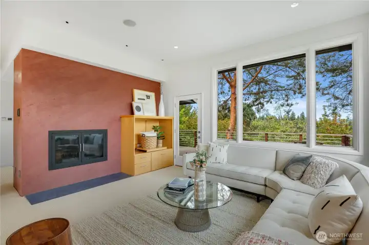 Perched above the Burke-Gilman Trail in sought-after Inverness, this 5,670 sq ft custom home offers Lake Washington and lush territorial views and refined luxury throughout. A chef’s kitchen with high-end appliances, custom cabinetry, and a 3-tap drink station opens to a spacious entertainment deck. Two primary suites, two additional bedrooms, a lofted office, media room with wet bar, and personal gym provide versatile living space. Updates include new maple hardwoods, fresh paint and carpet. Custom closets and built-ins, three fireplaces, and decks on every level—making this a rare offering.