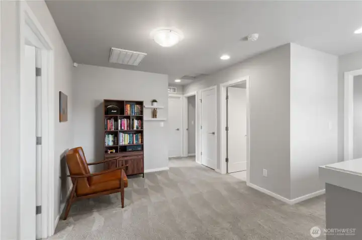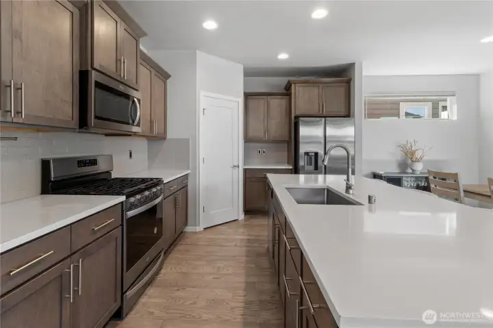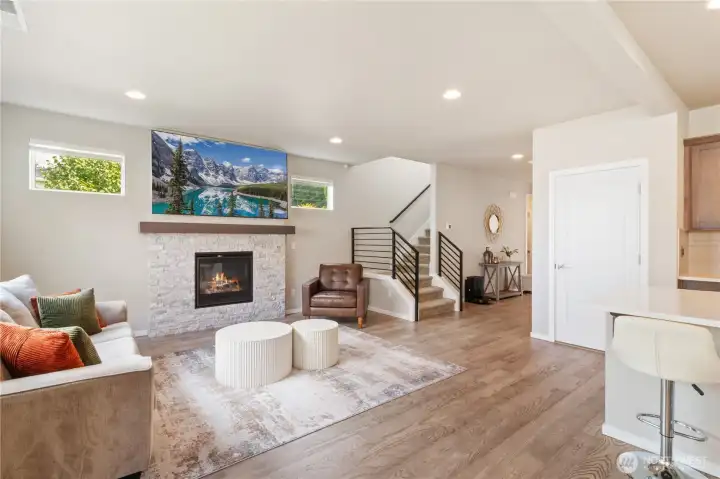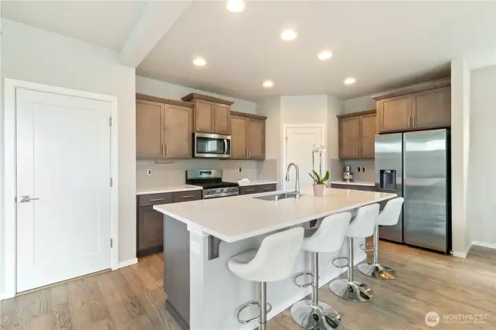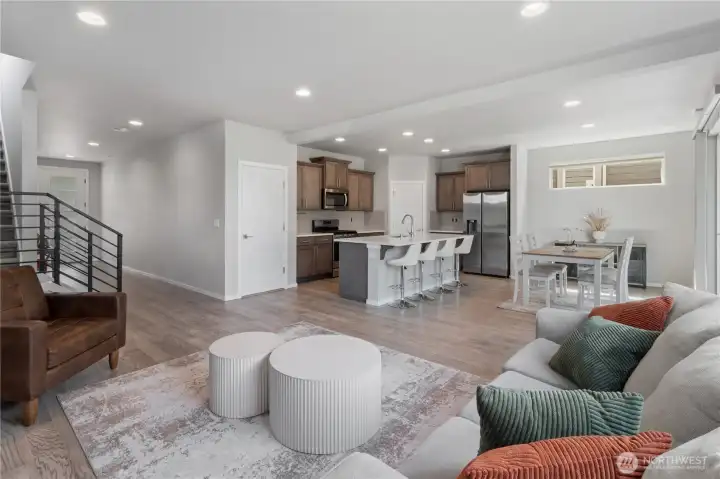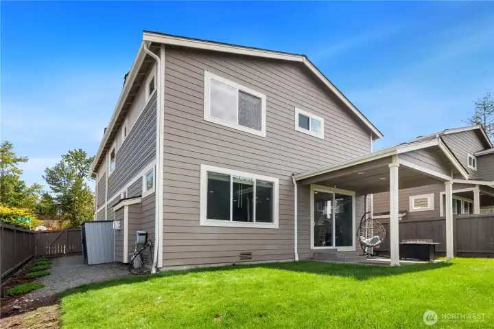 Move-in ready home perfectly located a minute from Hwy 167 w/ easy access to I-405 & I-5, Sounder & Light Rail Station! Natural light from oversized windows & tall ceilings provide an elegant place for gatherings & daily living! Luxurious feel from the hardwood floors, white quartz countertops, grand Kitchen island, open stair railing, + more. Versatile loft & large utility room upstairs. Spacious Primary w/ ensuite 5-piece bath! Stay cool indoors w/ A/C, or relax outdoors with fully fenced backyard & shaded patio! You'll love the painted garage w/ epoxy floors, shed, sprinkler system, smart garage door opener, + EV charger & alarm system. Blinds already installed, appliances stay! Exclusive community parks & gated dog park! Welcome home!