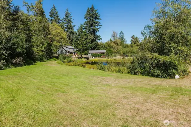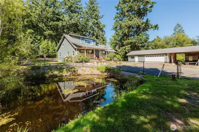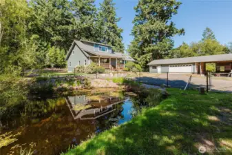 Classic updated farmhouse on 3.18 peaceful acres has modern living in mind. Bright and open throughout with fresh paint and luxury vinyl plank flooring, new Lennox HVAC, updated lighting. Slab granite countertops, stainless appliances, pull out shelving enhance the large remodeled kitchen that opens to the solarium with vaulted ceilings, skylights and wood stove. Wet bar, original hardwood floors in the living room, 2 full baths, spacious primary with soaring ceiling and 2 walk in closets. Covered front porch overlooks the 2 ponds on your stunning, fully fenced and gated property. Large back deck, huge shop/garage/studio with covered RV/boat parking. Bring your plans for the included buildable lot. Multigenerational possibilities abound.