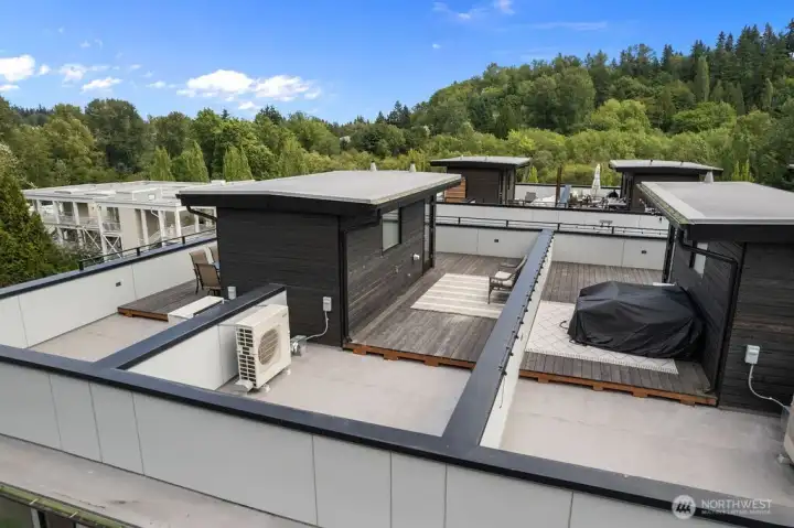 Welcome to Riverwalk at Bothell Landing! This immaculate, stylish home still feels & looks brand new. Just minutes away from growing Downtown Bothell this 4 bedroom, 3 bathroom townhome features tasteful & luxurious designs & materials you won't find in similar homes near by such as a floating staircase & open metal railing. Bedrooms all feature built in closets while the bathrooms show off luxury materials. Kick back & relax in your open floor living room with A/C or soak in some sun at the rooftop deck. The exterior of the home features brick & cedar materials along with your own private, spacious 2 car garage. Steps away from the Sammamish River Trail. Easy access to highways & public transportation. Don't miss out on this like new home!