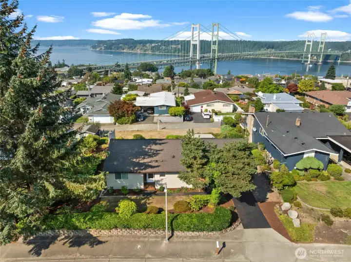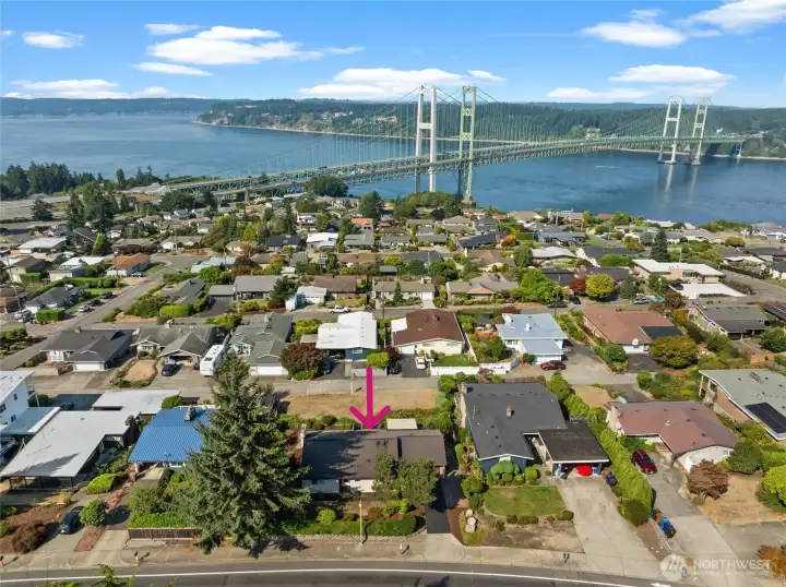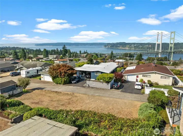 Perched above Tacoma with the most breathtaking views, this home captures year-round sunsets over the Tacoma Narrows Bridge, Gig Harbor, Puget Sound, and the Olympic Mountains—an ever-changing backdrop that feels truly one-of-a-kind. The approx. 1,200 sq. ft. residence features 2 bedrooms and 1 bath, enhanced with thoughtful upgrades including a new furnace and water heater, a fully renovated bathroom, and fresh interior and exterior paint. A covered deck and beautifully kept landscaping extend your living space outdoors in every season. Beyond the charm of the home itself, the property offers rare potential: the lower portion of the parcel and ample alley-access parking make it ideal for adding a DADU, duplex, triplex, or detached garage!