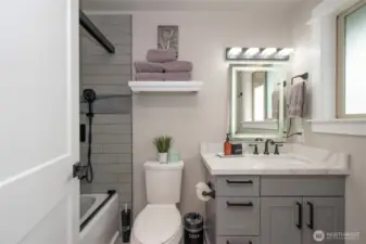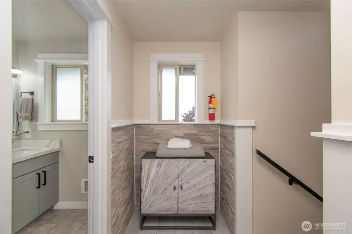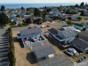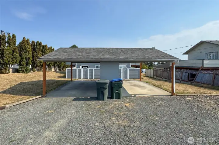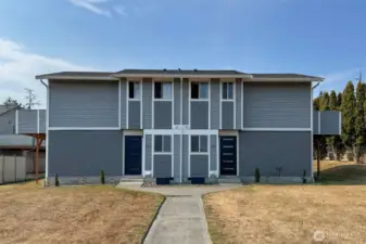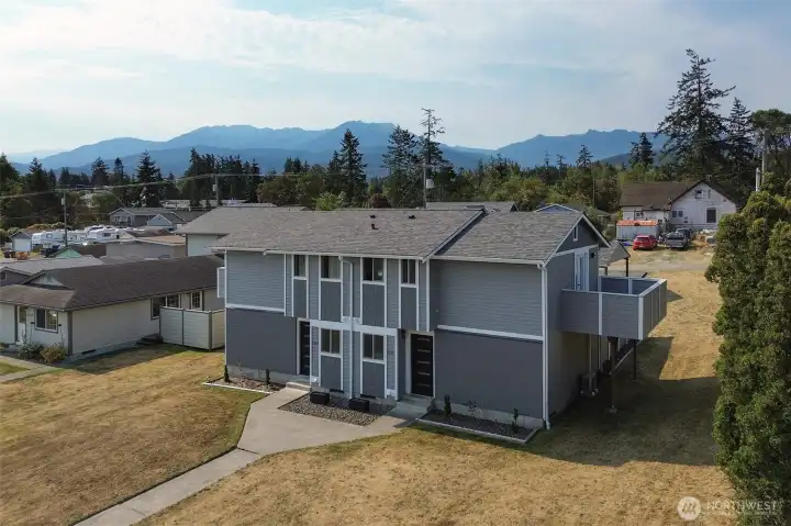 Twin Peaks East — Stylish Duplex with Mountain Views! Fully remodeled duplex with 1,000 sq ft per unit, each offering 2 beds, 1.5 baths, and sold furnished. Located on a quiet west side street in Port Angeles on an oversized lot. Live in one unit and lease the other month-to-month. Each includes stocked kitchen, linens, Smart TV, BBQ, washer/dryer, and carport with storage. Extra alley-access parking available. Enjoy fenced patio with mountain views, laminate flooring, designer lighting, ductless heat pump, quartz counters, and stone accents. Upstairs features two bedrooms, full bath, and a deck with water views. Minutes from downtown, trails, and Olympic National Park—this is a rare chance to own a turnkey duplex in a prime location.