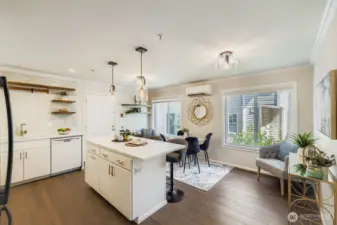 Rare 3 bed/ 2.25 bath, 1,772 sq ft condo in the heart of Ballard-- bigger than most new townhomes! This spacious 2-story home in a 3 unit building features A/C throughout and brand new carpet. Enjoy large rooms, a generous living/dining area, and an updated eat-in kitchen with quartz counters, premium gas range, and ample storage. Upstairs: Mt. Rainier views from the primary suite, 2 more large bedrooms, 2 full baths, and true laundry room. Shared backyard and deck, 2 secure garage spots, storage locker, pet-friendly. Steps to top dining, cafes, and transit. 97 walk score!