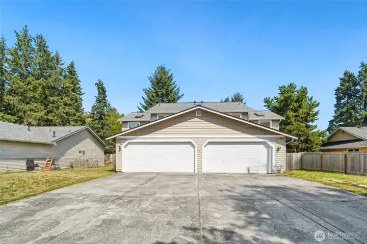 Very Desirable Two Story Duplex with 2 car garages! Good size living room with gas fire place. Kitchen with eating bar and dining space, half bath on main floor. 3 bedrooms up with 2 full baths. Set up with a primary with own bath. Private back yards with patio's. Left unit has Vinyl plank flooring and newer carpet. New roof in 2019. Low maintenance Vinyl siding with trim painted a few years ago. Long term tenants.