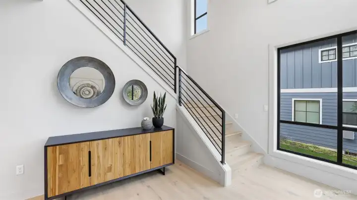 Avon Development presents a striking NW Contemporary in Lower Kennydale with panoramic views of Lake Washington and the Olympic Mountains. Vaulted ceilings and open living spaces flow into a chef’s kitchen and expansive rooftop deck—ideal for entertaining or quiet mornings. The luxe primary suite features a spa-style bath and custom walk-in closet, while additional en-suite bedrooms offer guest comfort. Enjoy A/C, a fenced yard, pre-built elevator design, and 3-car garage. Nestled near trails, bike paths, and waterfront parks, this home blends modern design with an exceptional lifestyle.