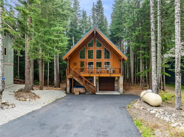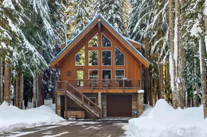 Year-round mtn living, second home or investment property situated on a private road tucked away in a secluded neighborhood of Snoqualmie Pass. Close to slopes and amenities; far enough away to feel like you are truly in the mountains. Tongue and groove wood ceilings accent the massive beams. A wall of windows frames a forested view. Open concept main level with modern kitchen and stainless steel appliances. Thomasville cherrywood cabinets in kitchen and bathrooms. Solid wood doors and two bedroom closets with Thomasville shelving. Lofted master bedroom suite with large modern bathroom with both a designer bathtub and two person European type shower. Private decks on the front and back. Listen to the birds, gaze at the snow covered trees.